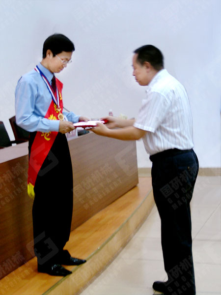 大会在庄严的国歌声中拉开了序幕。胸戴大红花,身披绶带的广州市劳动模范、ky体育(中国)官方网站机械市场部经理刘启刚同志受到了公司领导和全体员工的热烈欢迎。董事长兼总经理王声位亲自为刘启刚同志佩戴广州市委、市政府颁发的广州市劳动模范奖状并颁发奖金。