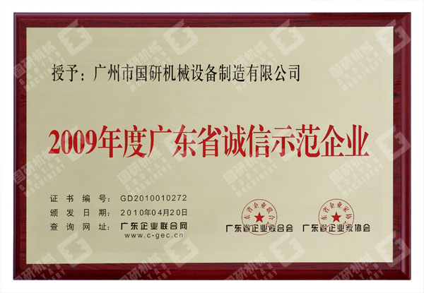 此次被评为“2009年度广东省诚信示范企业”,是对ky体育(中国)官方网站机械的一次巨大鼓舞和鞭策。ky体育(中国)官方网站机械将再接再厉,以“诚信经营”作为企业生存之本,忠实履行企业经济责任与社会责任,做用户最信赖的企业,为社会提供最优质的产品与服务。