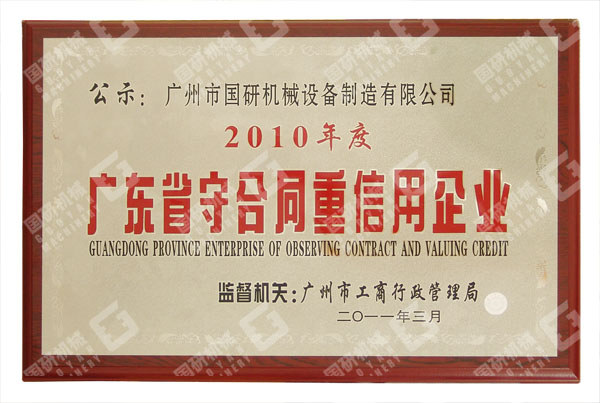 2011年4月,继连续三年被评为“广州市守合同重信用企业”之后,ky体育(中国)官方网站机械再获殊荣,被评为2010年度“广东省守合同重信用企业”。