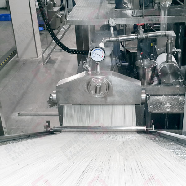 可以大米、玉米淀粉或荞麦等杂粮类产品为原料,可生产不同粗细粉径的直条米粉,粉条长度可按需订制,一定范围内可调,成品米粉含水量约为12%∽14%。